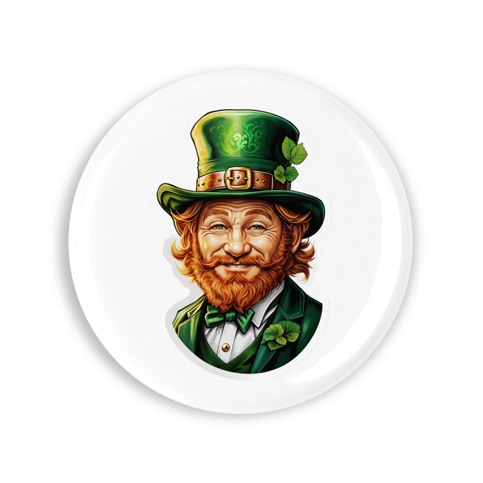 - Set 4 insigne, Spiridus Leprechaun cu floare la joben, NO8433, Metal, 44 mm, Multicolor