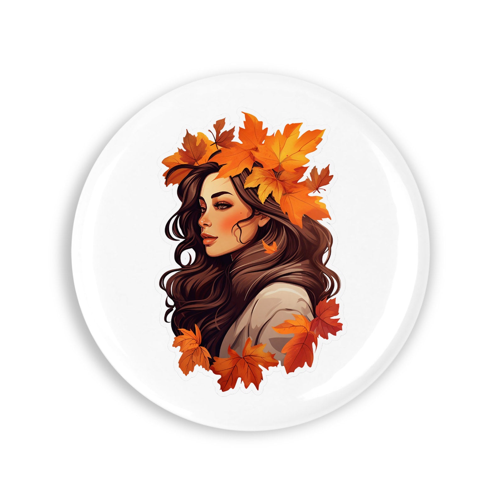 - Set 4 insigne, Toamna Fata cu frunze in par, NO3938, Metal, 44 mm, Multicolor