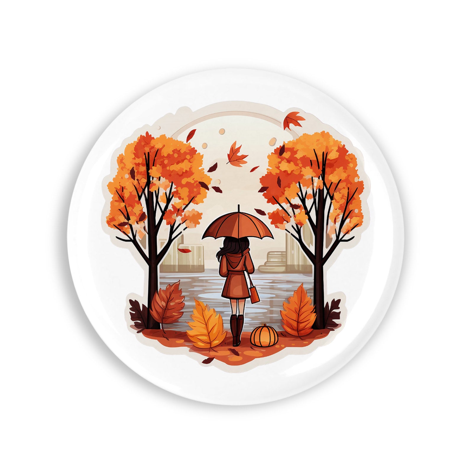 - Set 4 insigne, Toamna Fata cu umbrela , NO4960, Metal, 44 mm, Multicolor