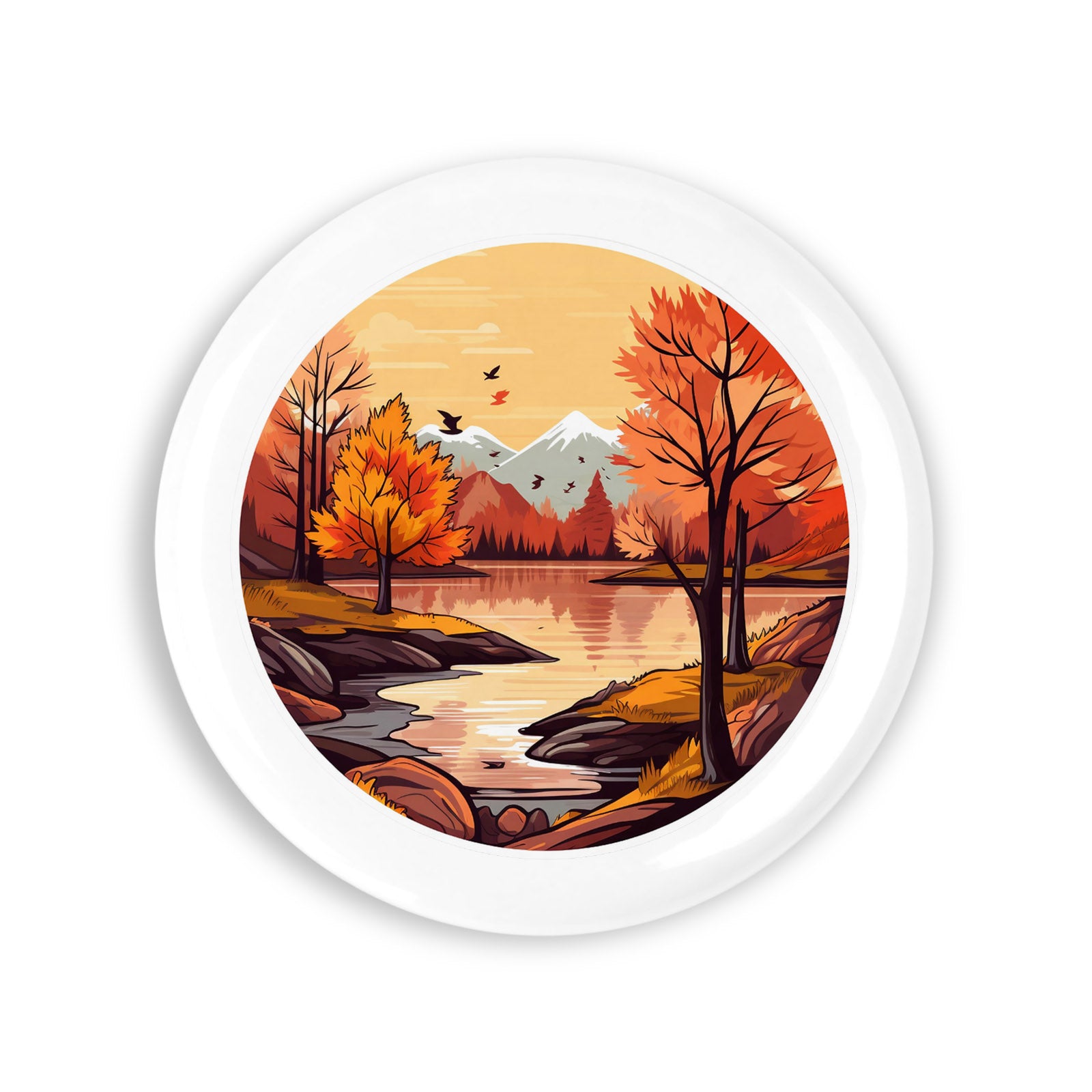 - Set 4 insigne, Toamna Peisaj montan, NO2028, Metal, 44 mm, Multicolor