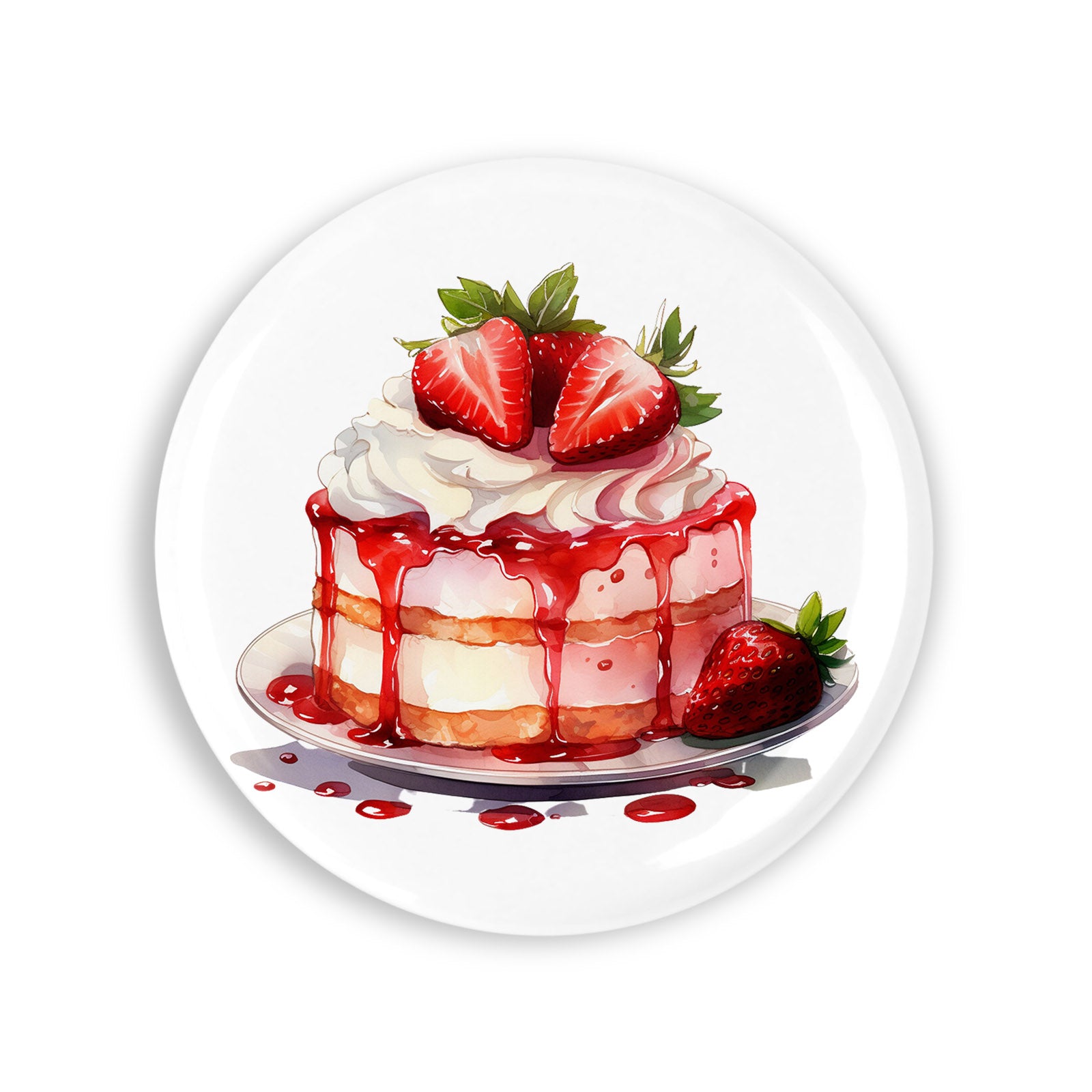 - Set 4 insigne, Tort cu frisca si capsune, NO951, Metal, 44 mm, Multicolor