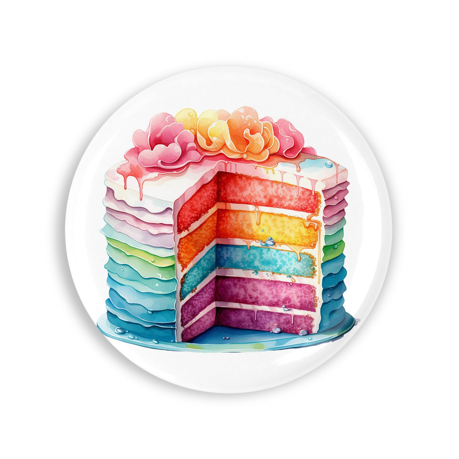 - Set 4 insigne, Tort curcubeu cu crema, NO4772, Metal, 44 mm, Multicolor