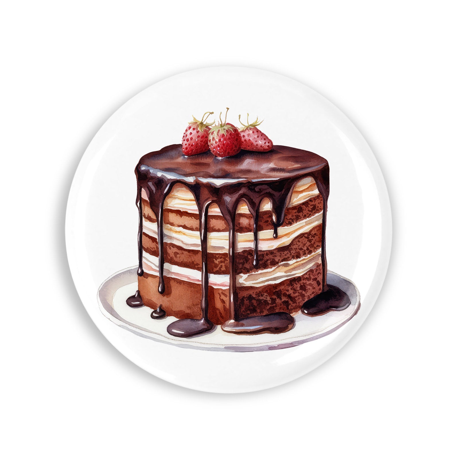 - Set 4 insigne, Tort de ciocolata cu capsune, NO5681, Metal, 44 mm, Multicolor