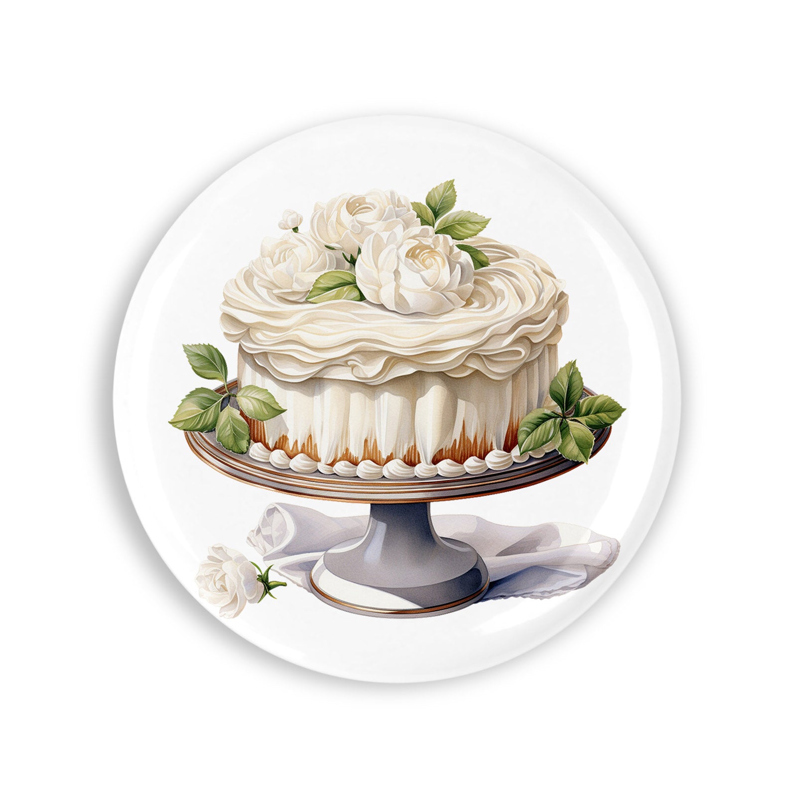 - Set 4 insigne, Tort de nunta cu frisca si trandafiri albi, NO3350, Metal, 44 mm, Multicolor