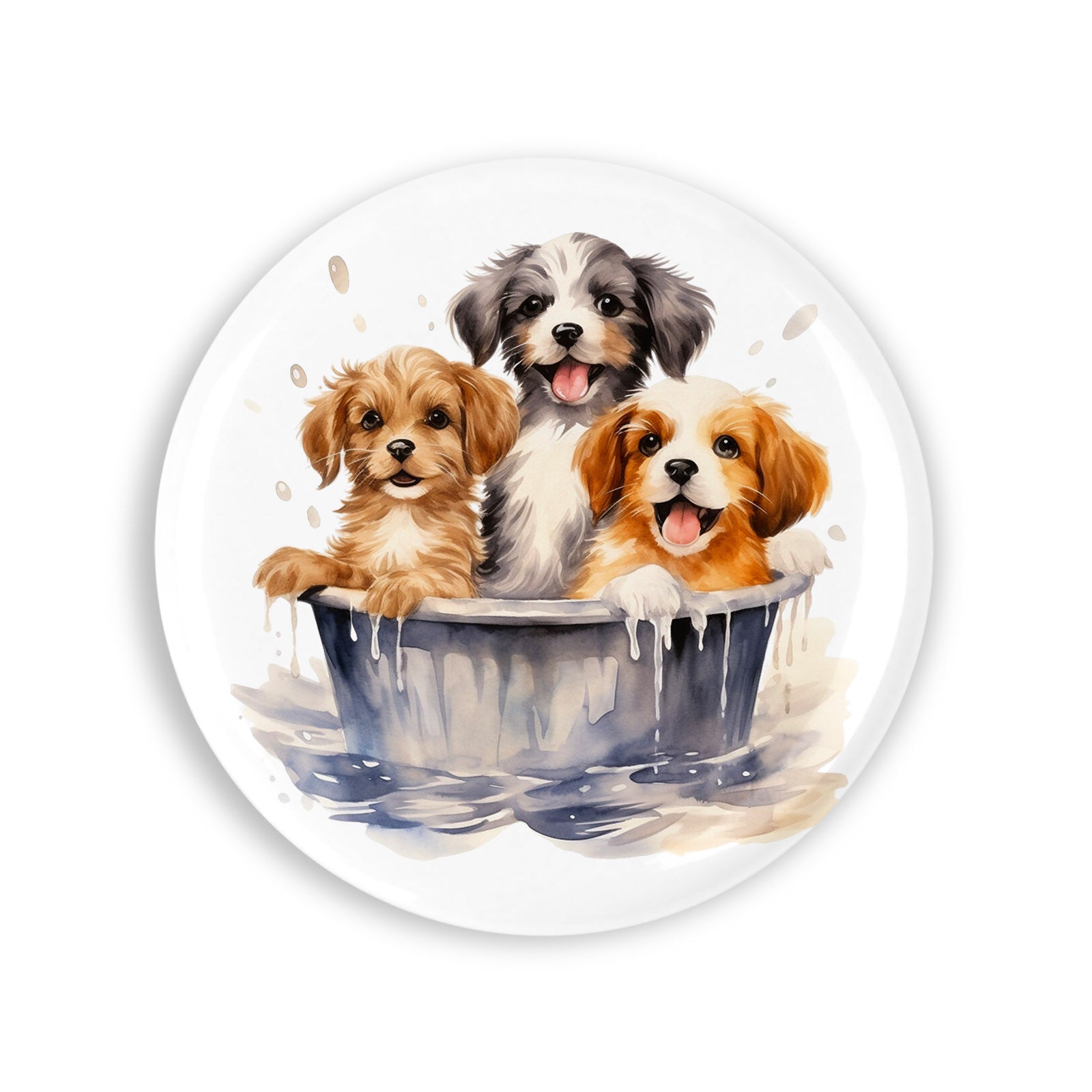 - Set 4 insigne, Trei pui de cine in lighean, NO606, Metal, 44 mm, Multicolor