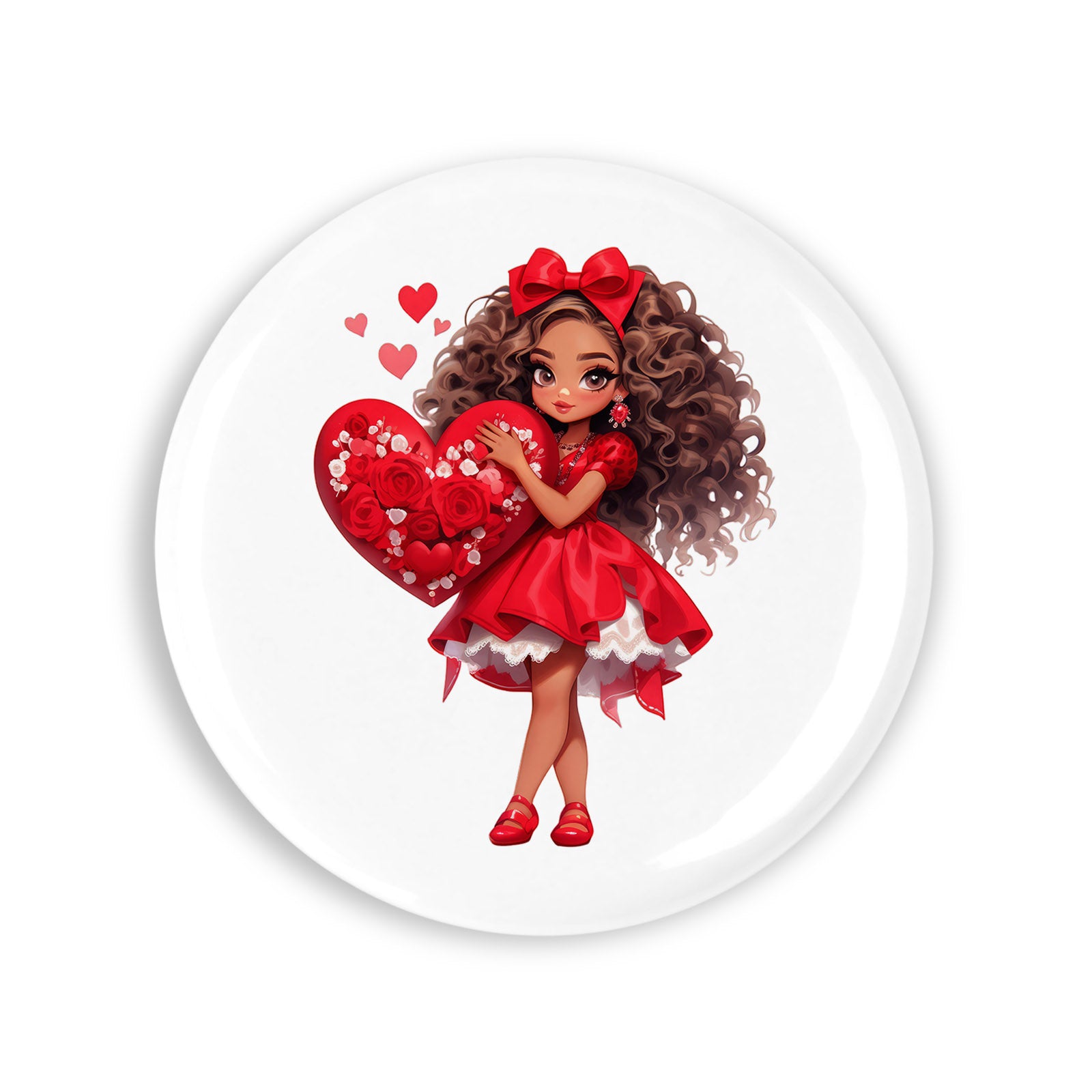 - Set 4 insigne, Valentine Girl Fata cu inima rosie, NO6084, Metal, 44 mm, Multicolor