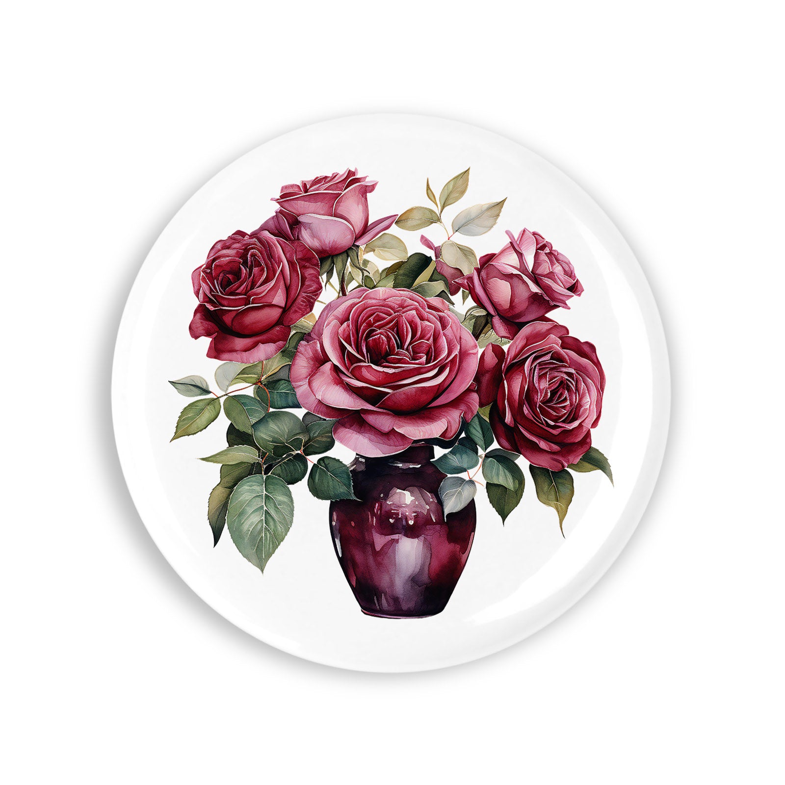 - Set 4 insigne, Vaza rosie cu trandafiri, NO753, Metal, 44 mm, Multicolor
