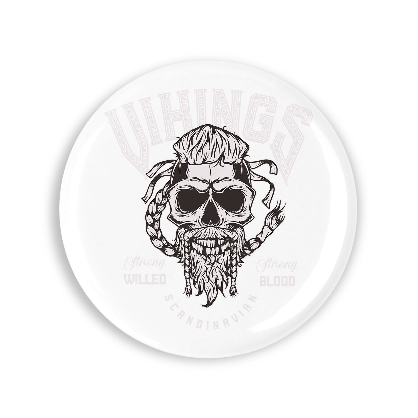 - Set 4 insigne, Vikings strong willed strong blood Scandinavian, NO559, Metal, 44 mm, Multicolor