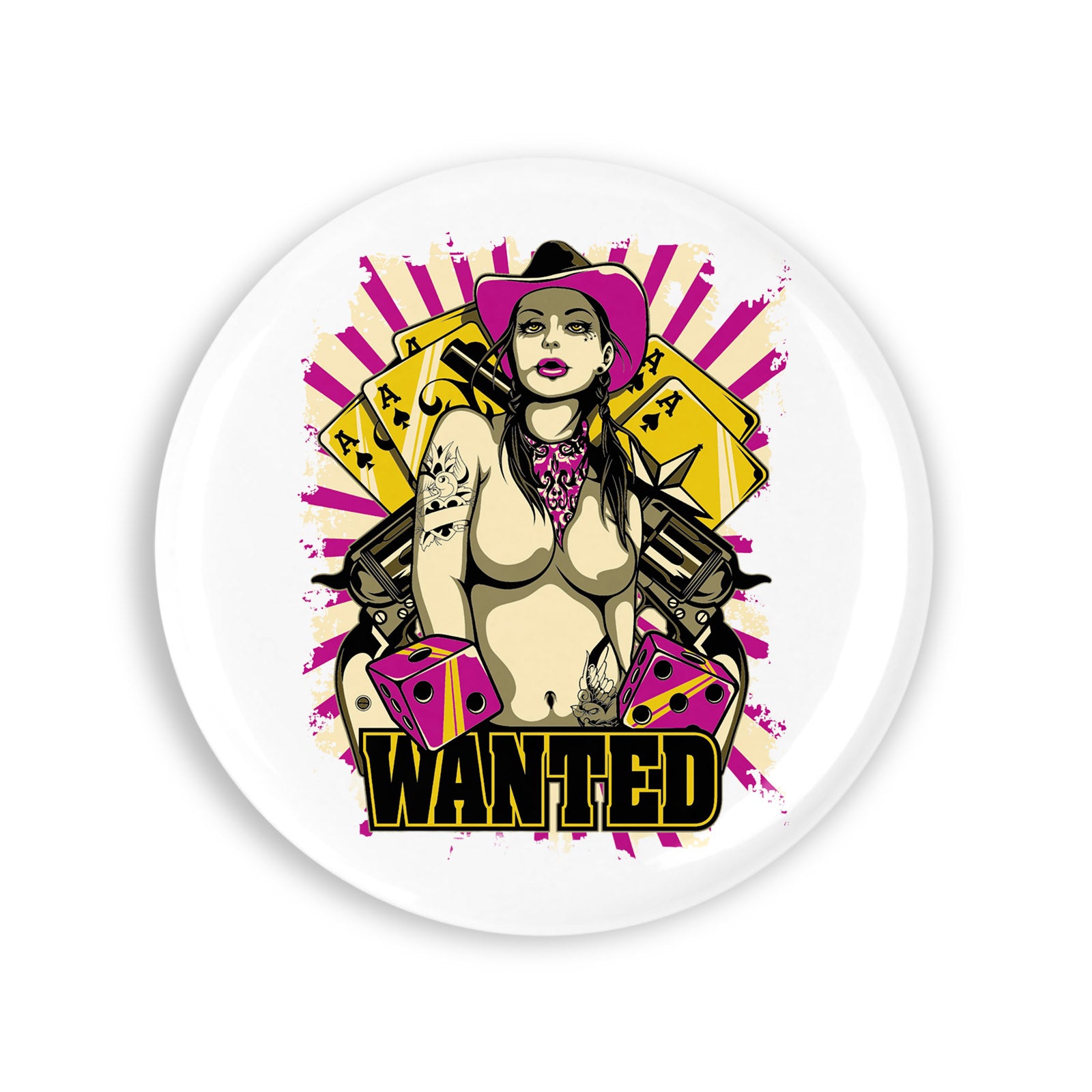 - Set 4 insigne, Wanted cautat, NO9705, Metal, 44 mm, Multicolor