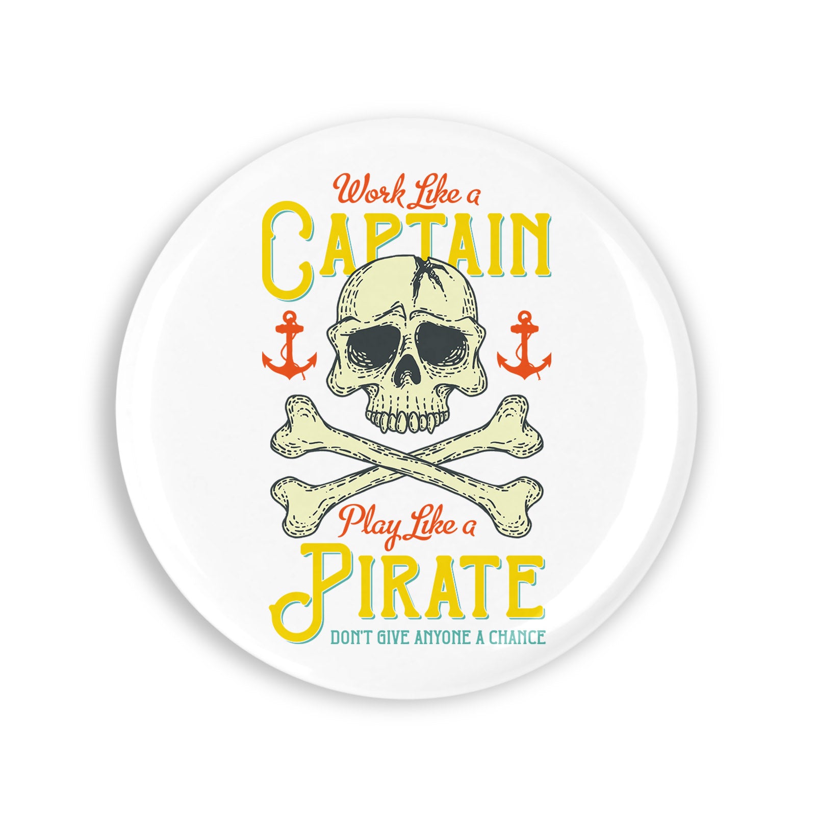 - Set 4 insigne, Worh like a captain Play like a pirate Dont give anyone a chance, NO6389, Metal, 44 mm, Multicolor