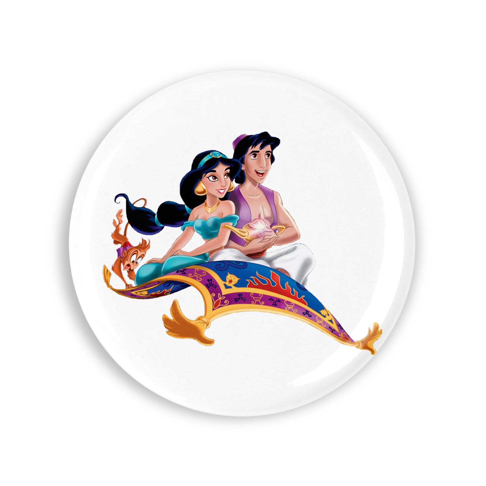 Set 4 insigne, Aladdin si printesa Jasmine pe covorul magic, NO9141, Metal, 44 mm, Multicolor