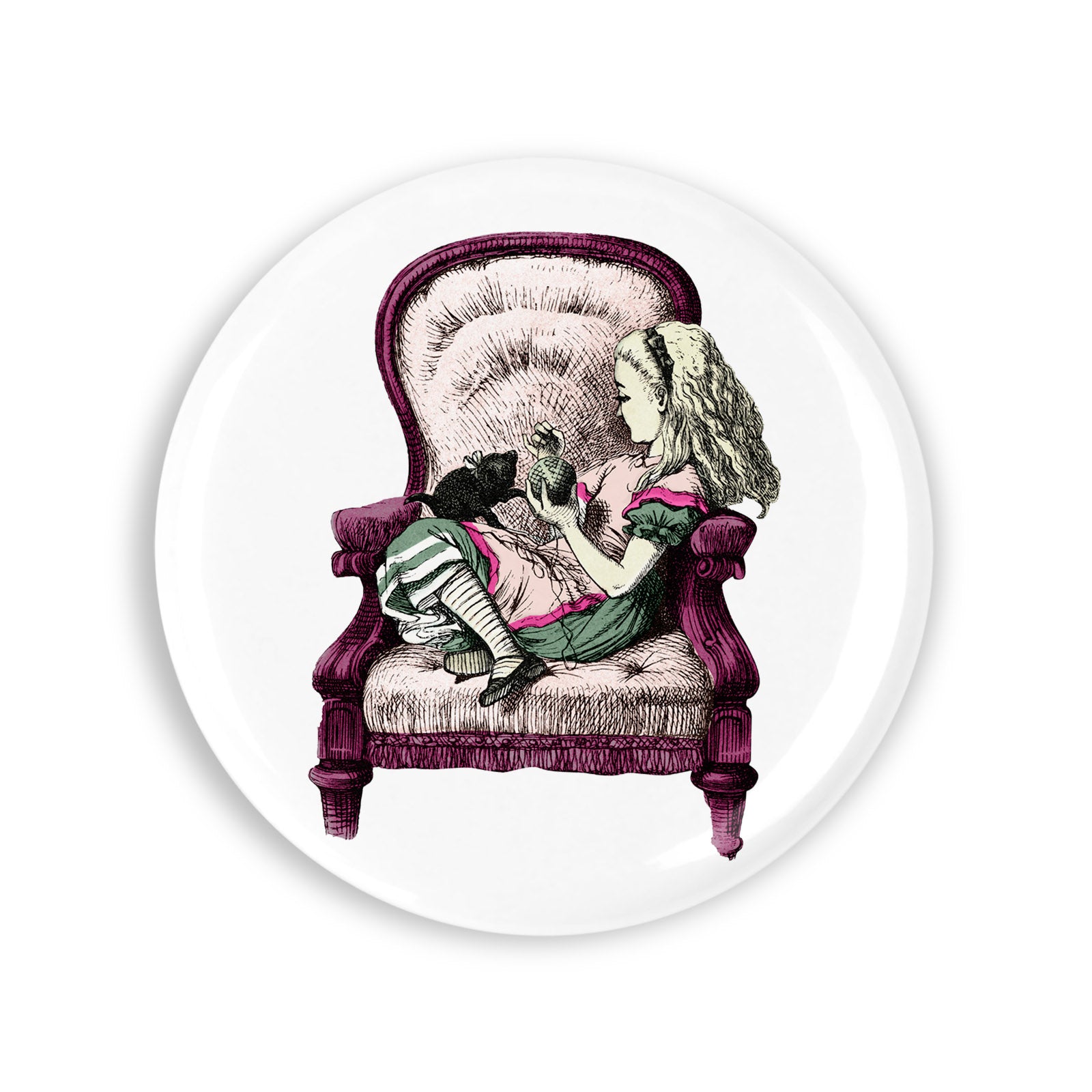 Set 4 insigne, Alice in tara minunilor cu pisica in brate, NO9145, Metal, 44 mm, Multicolor