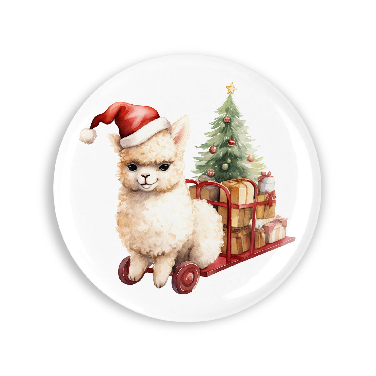 Set 4 insigne, Alpaca aduce cadouri de craciun, NO1031, Metal, 44 mm, Multicolor