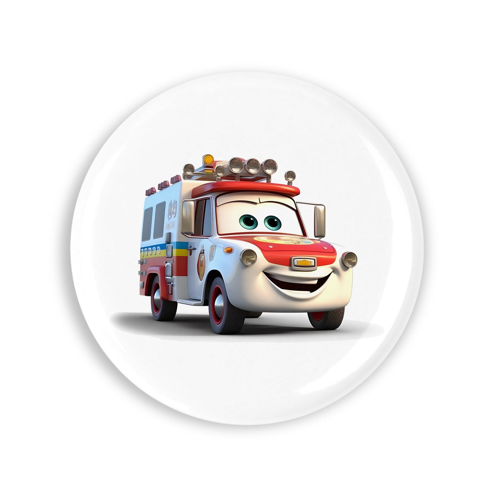 Set 4 insigne, Ambulanta cu ochi si gura zambitoare, NO6173, Metal, 44 mm, Multicolor