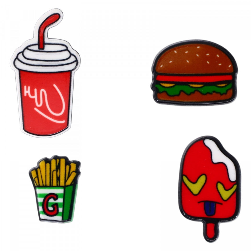 Set 4 insigne amuzante, Mancare fast food, NO917, 3 cm, Multicolor