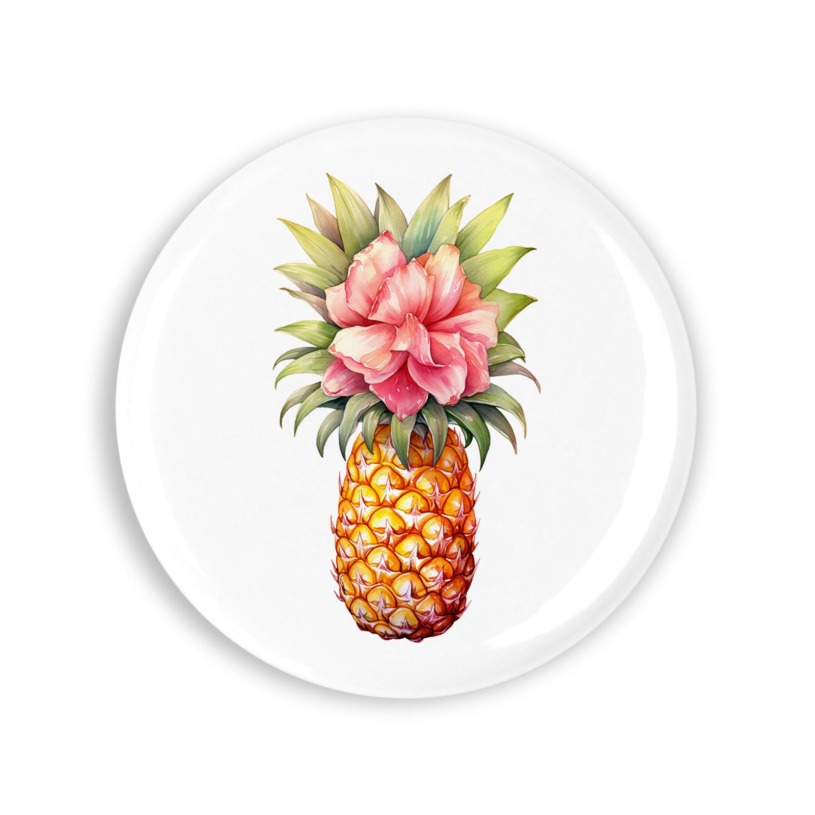 Set 4 insigne, Ananas cu floare roz, NO2460, Metal, 44 mm, Multicolor