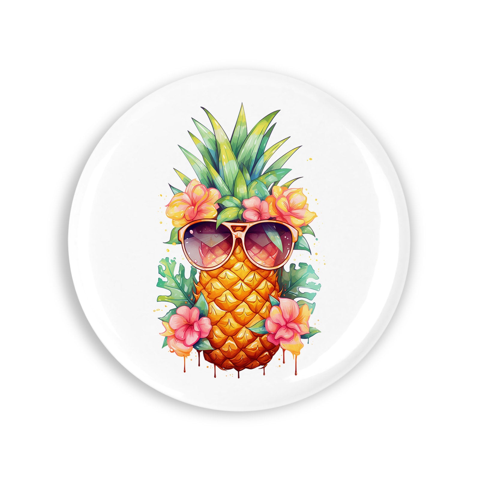 Set 4 insigne, Ananas cu ochelari de soare, NO1520, Metal, 44 mm, Multicolor