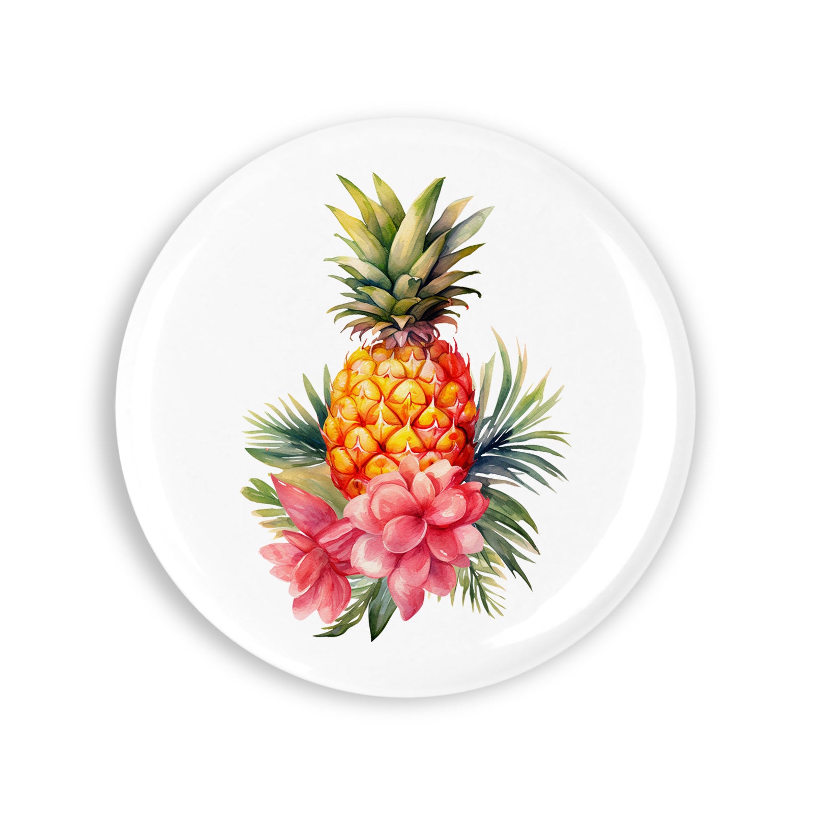 Set 4 insigne, Ananas intre flori, NO2103, Metal, 44 mm, Multicolor