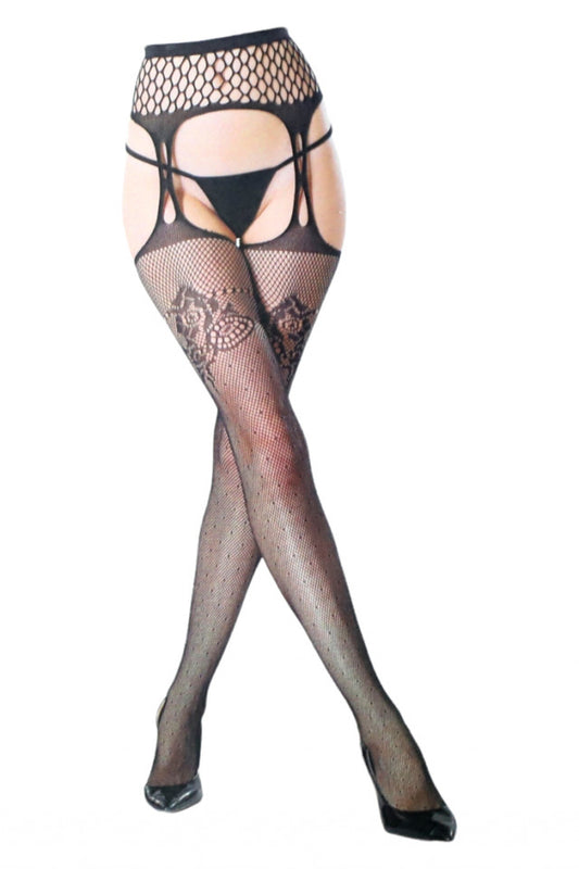Ciorap dama, plasa, tip Fishnet, Portjartier, NO50106, marime universala, Negru
