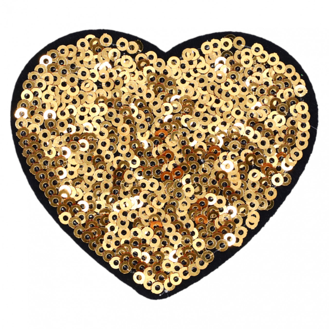 Petic textil, Patch, Inima, paiete, NO1030, 6.5 x 7 cm, Auriu