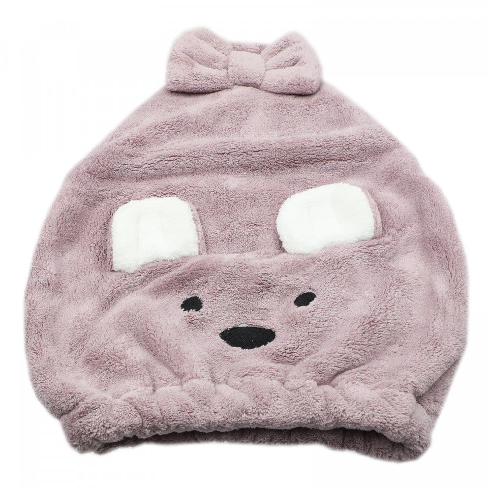 Prosop pentru uscat parul, de copii, tip caciulita, model ursulet, 37 x 30 cm, Lila