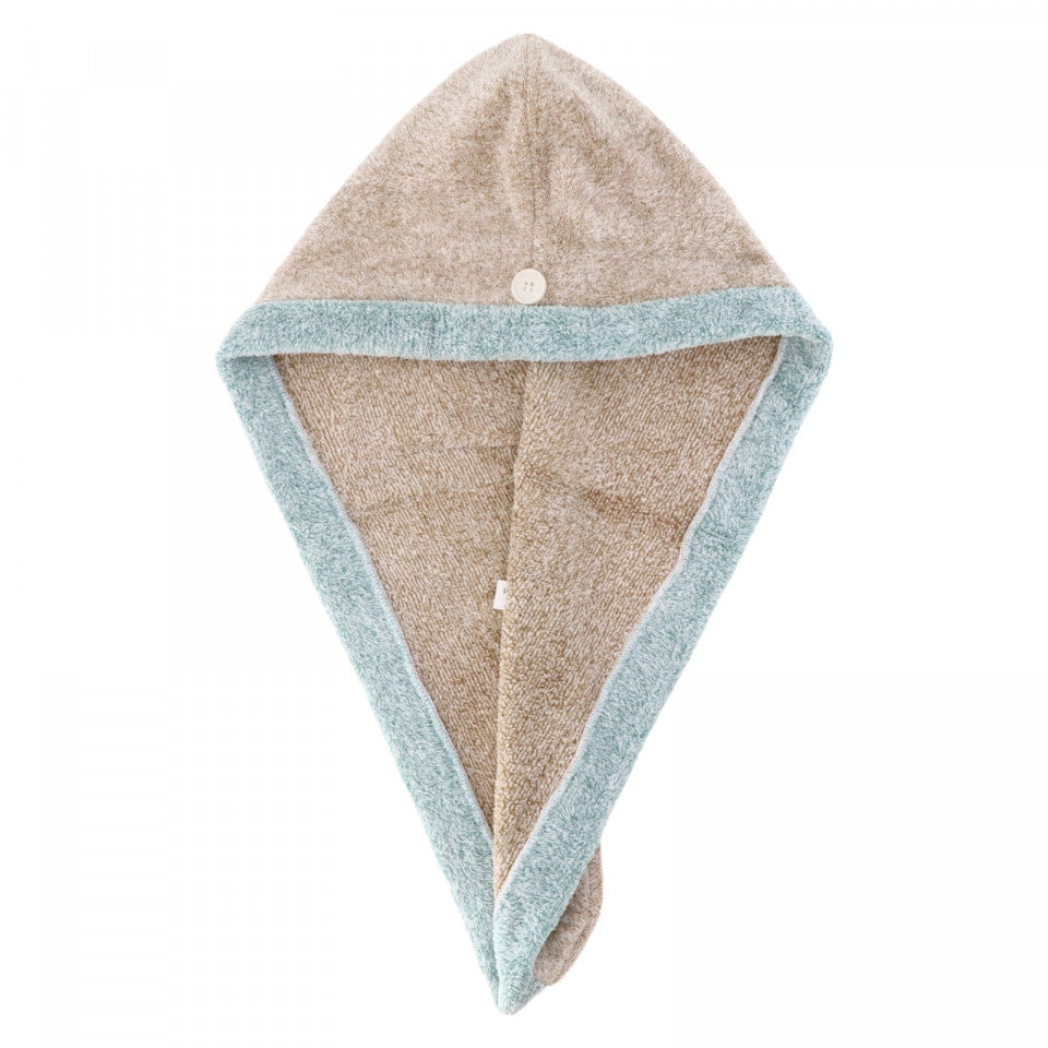 Prosop pentru uscat parul, tip turban, iepuras, nasture, NO683, 32 x 36 cm, Bej