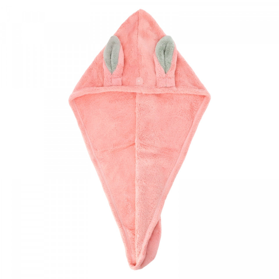 Prosop pentru uscat parul, tip turban, iepuras, nasture, NO683, 32 x 36 cm, Bej