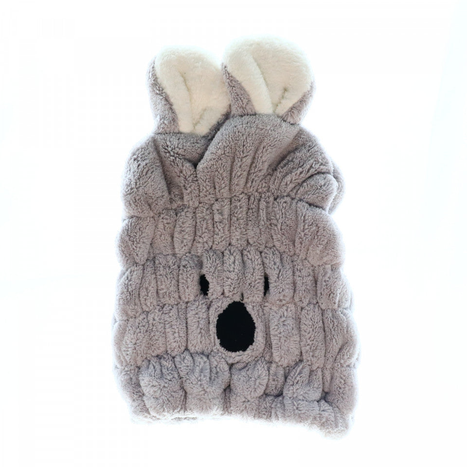 Prosop pentru uscat parul, tip caciulita, de copii, elastica, model ursulet, 20 x 16 cm, Gri