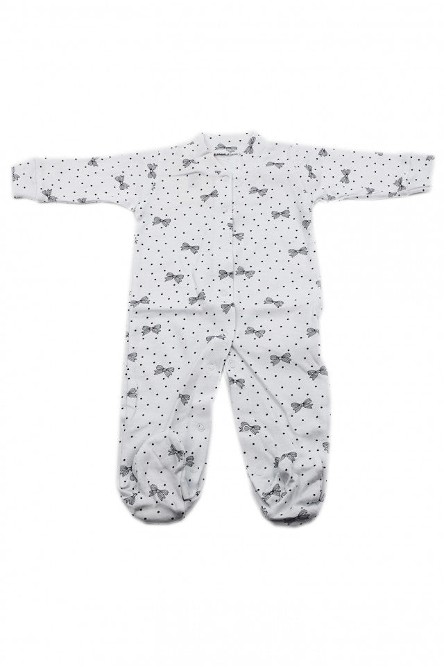 Salopeta bebe cu botosi, Imprimeu alb cu fundite negre, 0 - 3 luni, SB03SB15