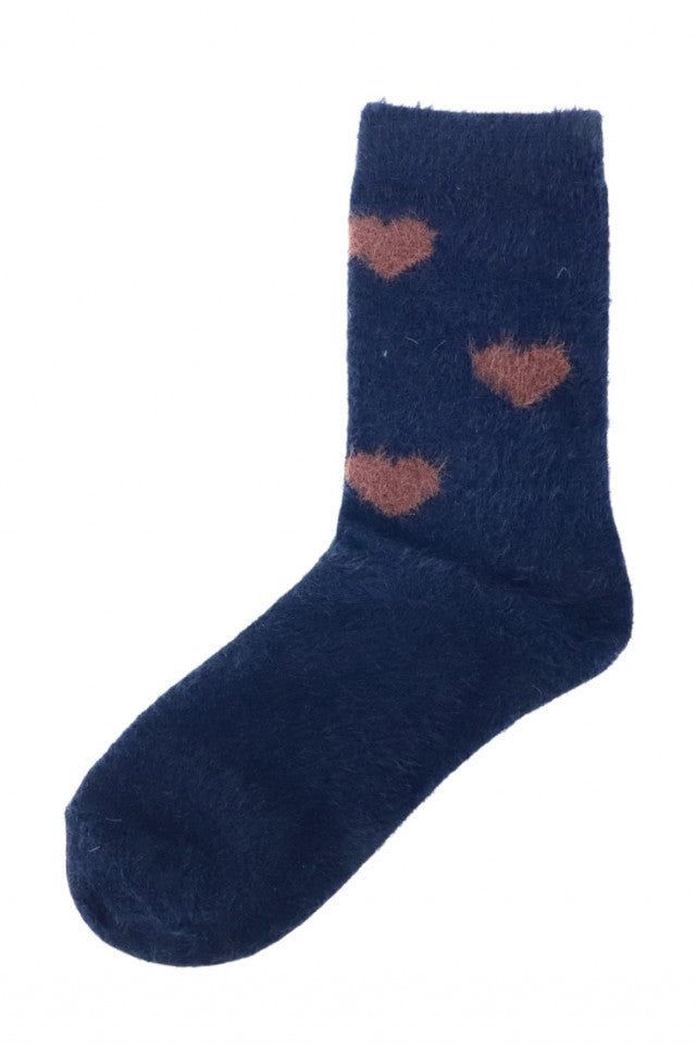 - Sosete lungi dama, 80% Lana Nurca, Inimioare, NO2126, 39-42, Albastru inchis