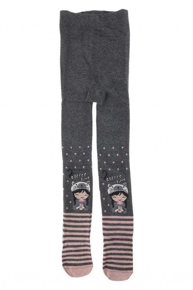 - Dres pentru fetite, 80% Bumbac, imprimeu fetita, Antialunecare, NO918, 5-7 ani, Gri inchis