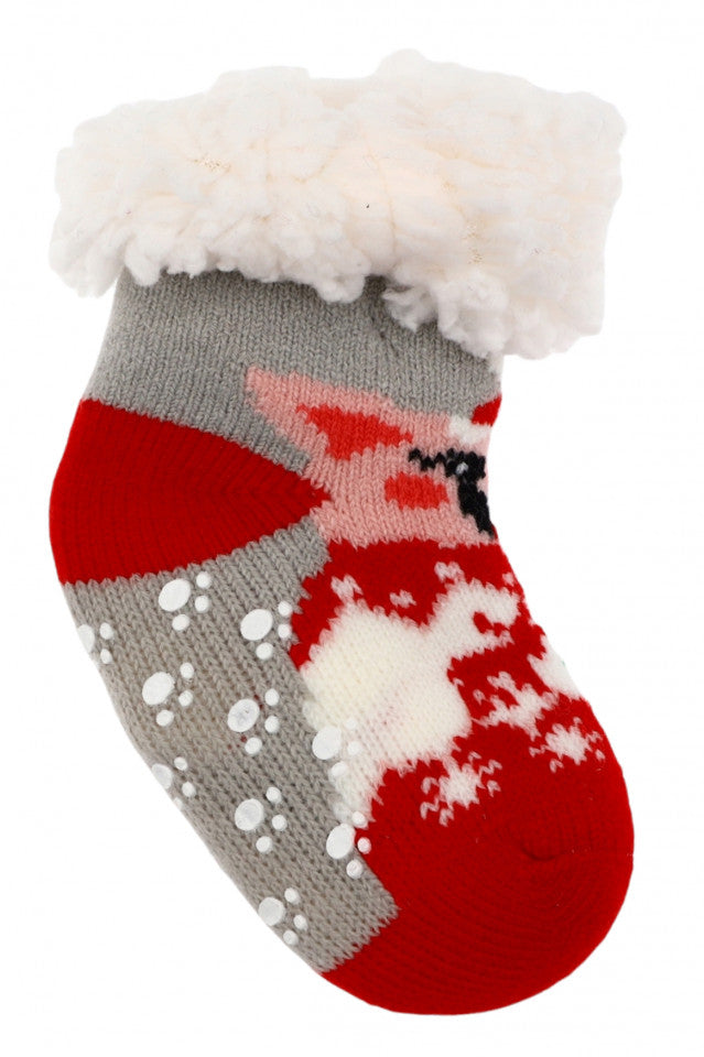 - Sosete bebelusi, Groase, imblanite, Antiderapante, NO5239, marime 12-24 luni, imprimeu Purcelus, Multicolor