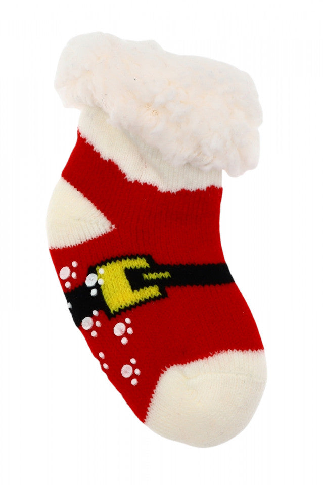 Sosete bebelusi, Groase, imblanite, Antiderapante, NO6739, marime 12-24 luni, imprimeu mos craciun, Multicolor