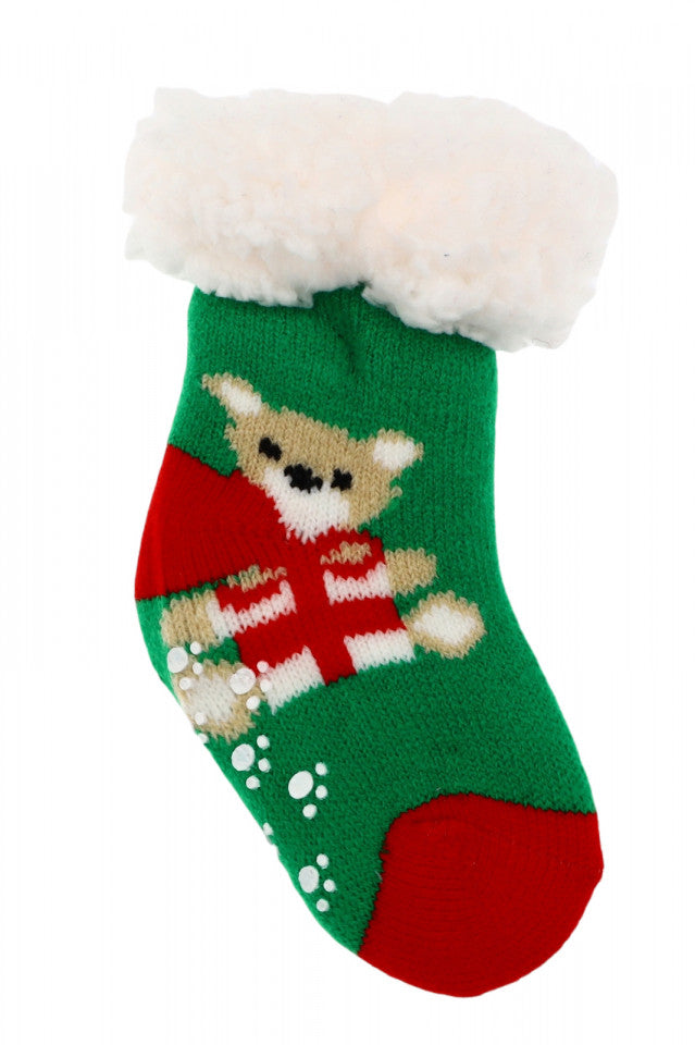 Sosete bebelusi, Groase, imblanite, Antiderapante, NO6739, marime 12-24 luni, imprimeu ursulet, Multicolor