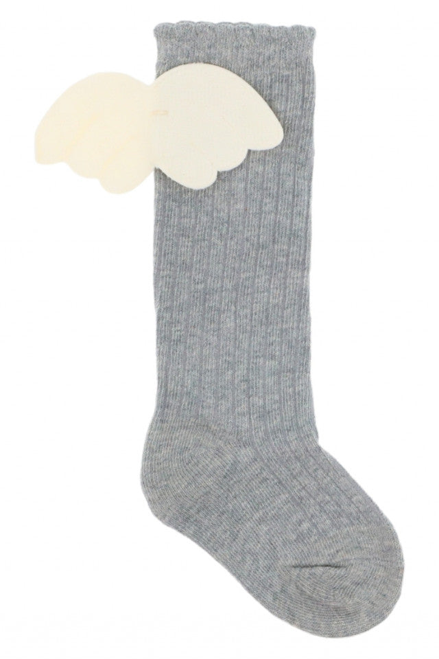 Sosete lungi pentru fetite, 95% Bumbac, Aripi de Inger, NO1233, 12-18 luni, Gri
