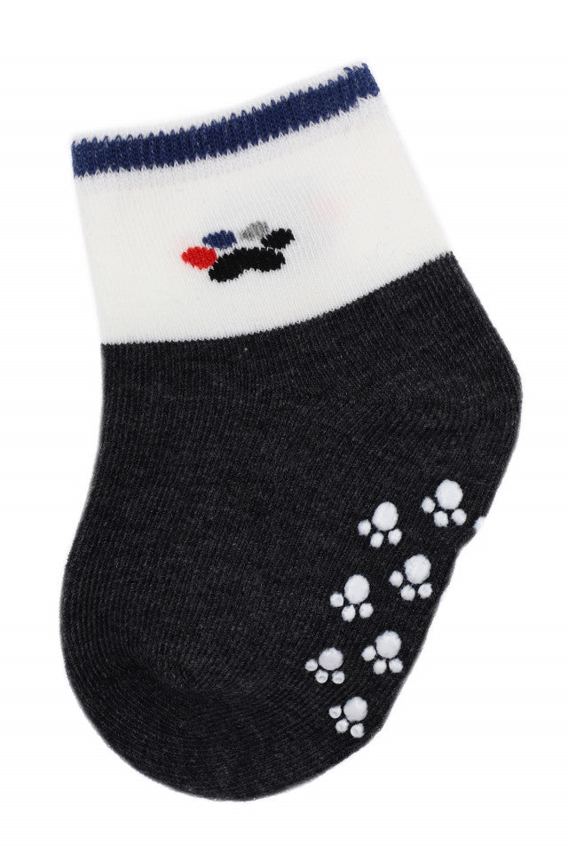 Sosete pentru copii, antiderapante, cu imprimeu labuta, 6 luni, Gri