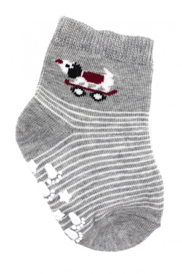 - Sosete pentru copii, antiderapante, Imprimeu catelus, 6 luni, Gri