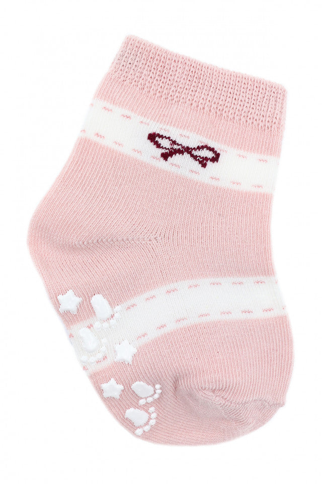 Sosete pentru copii, antiderapante, Imprimeu fundita, 12 luni, Roz