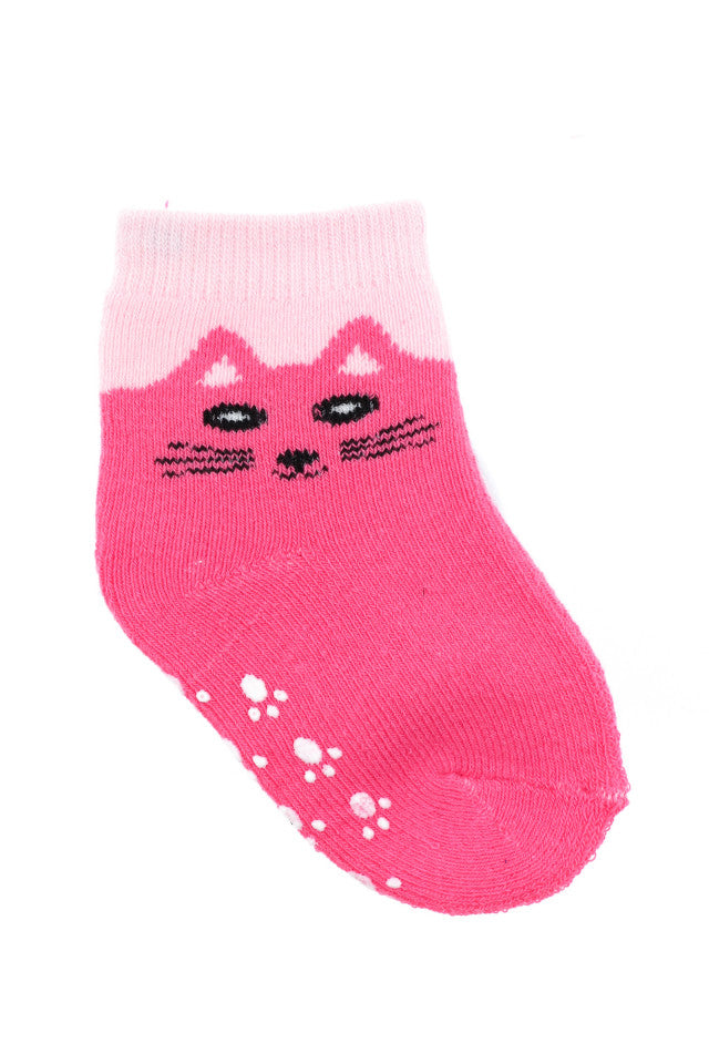 Sosete pentru copii, flausate, antiderapante, 95% Bumbac, imprimeu pisica, 18-24 luni, Roz