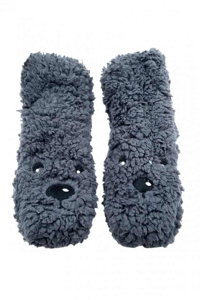 Sosete pentru copii, pufoase, antiderapante, imprimeu ursulet, marime 24-27, Gri