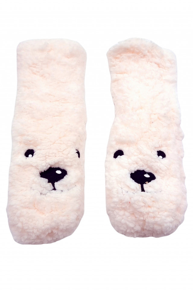 Sosete pentru copii, pufoase, antiderapante, imprimeu ursulet, marime 28-31, Alb