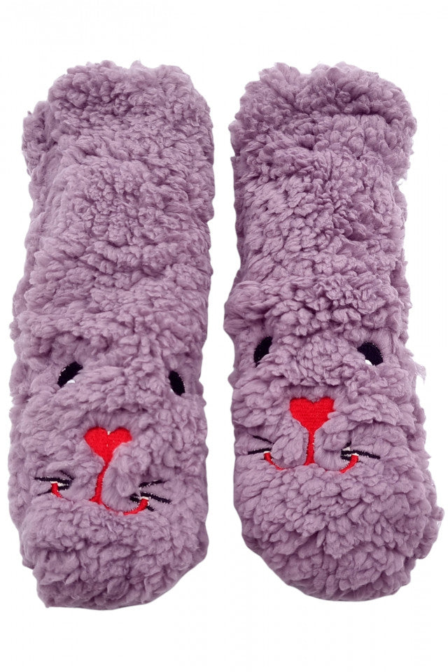 Sosete pentru copii, pufoase, antiderapante, imprimeu ursulet, marime 28-31, Mov
