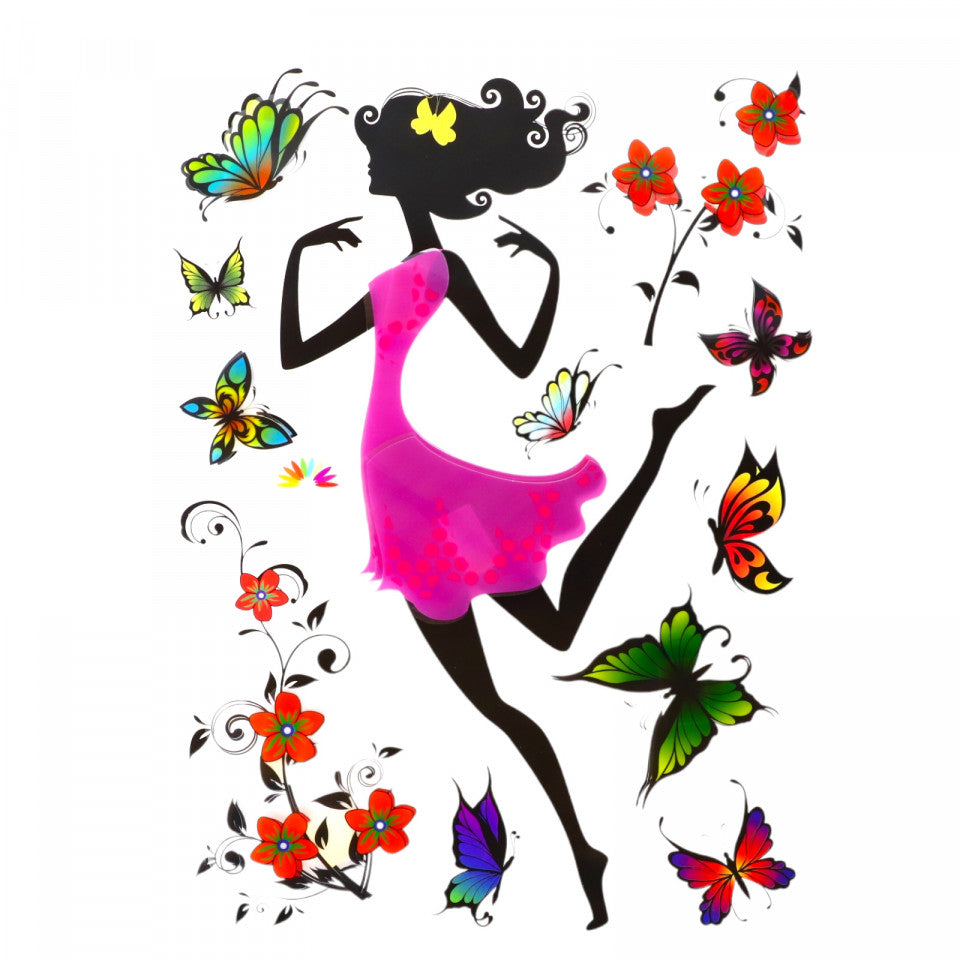 Sticker decorativ pentru camera copilului, 8D, Zana cu fluturi, RA-010, 38 cm