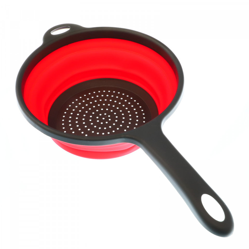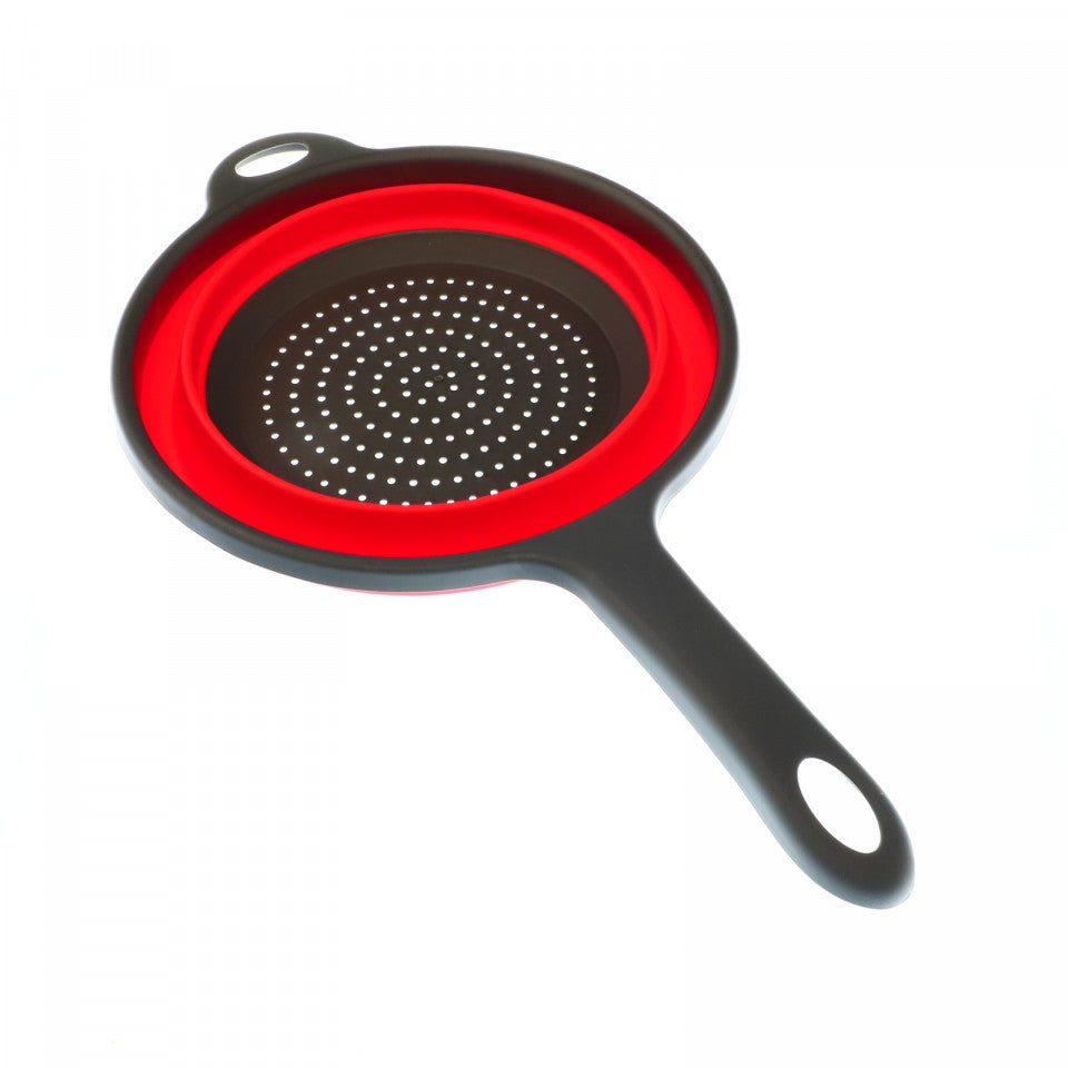 - Strecuratoare profesionala pliabila din silicon cu maner, pentru paste, spalat fructe si legume, rotund, 22 cm, Rosu