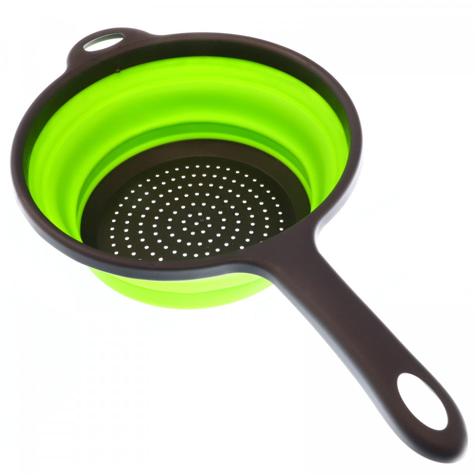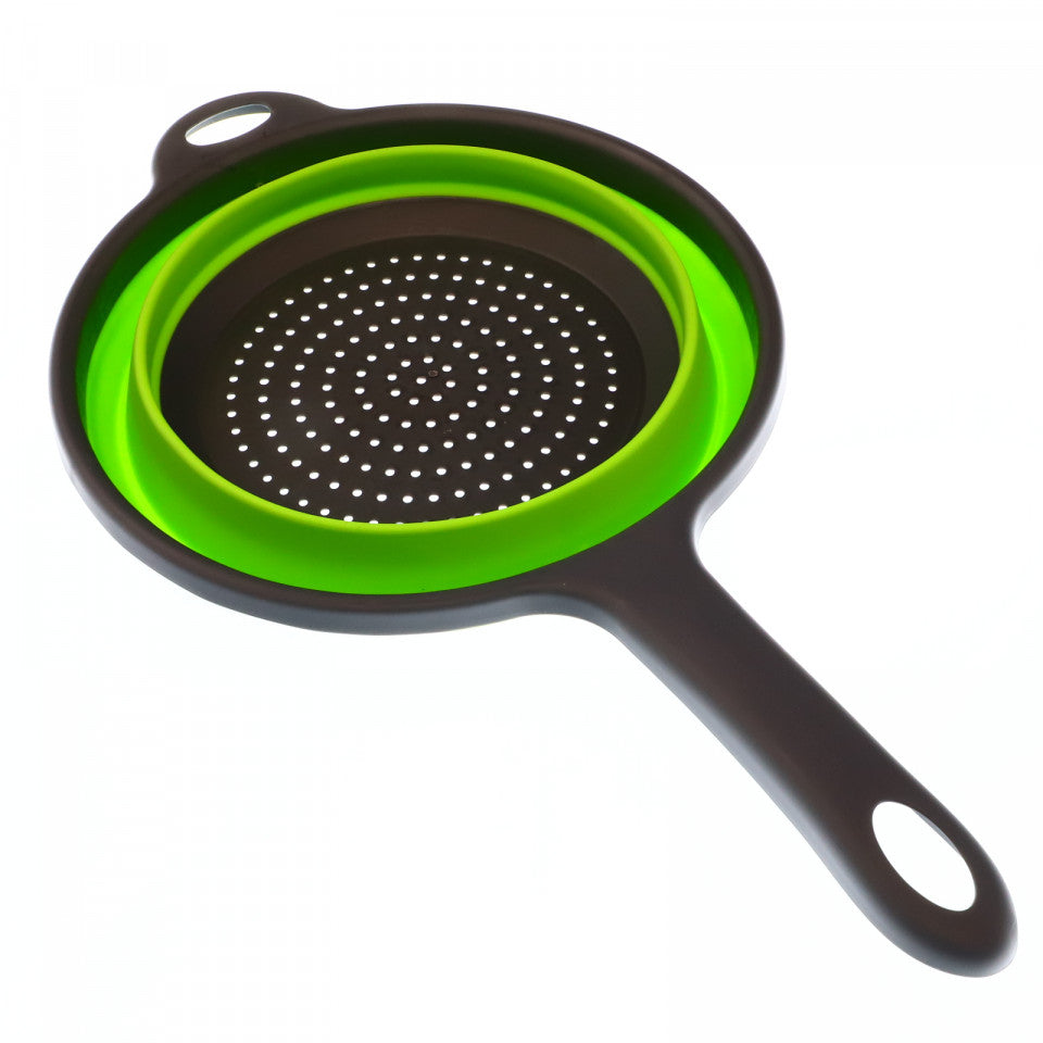 - Strecuratoare profesionala pliabila din silicon cu maner, pentru paste, spalat fructe si legume, rotund, 22 cm, Verde