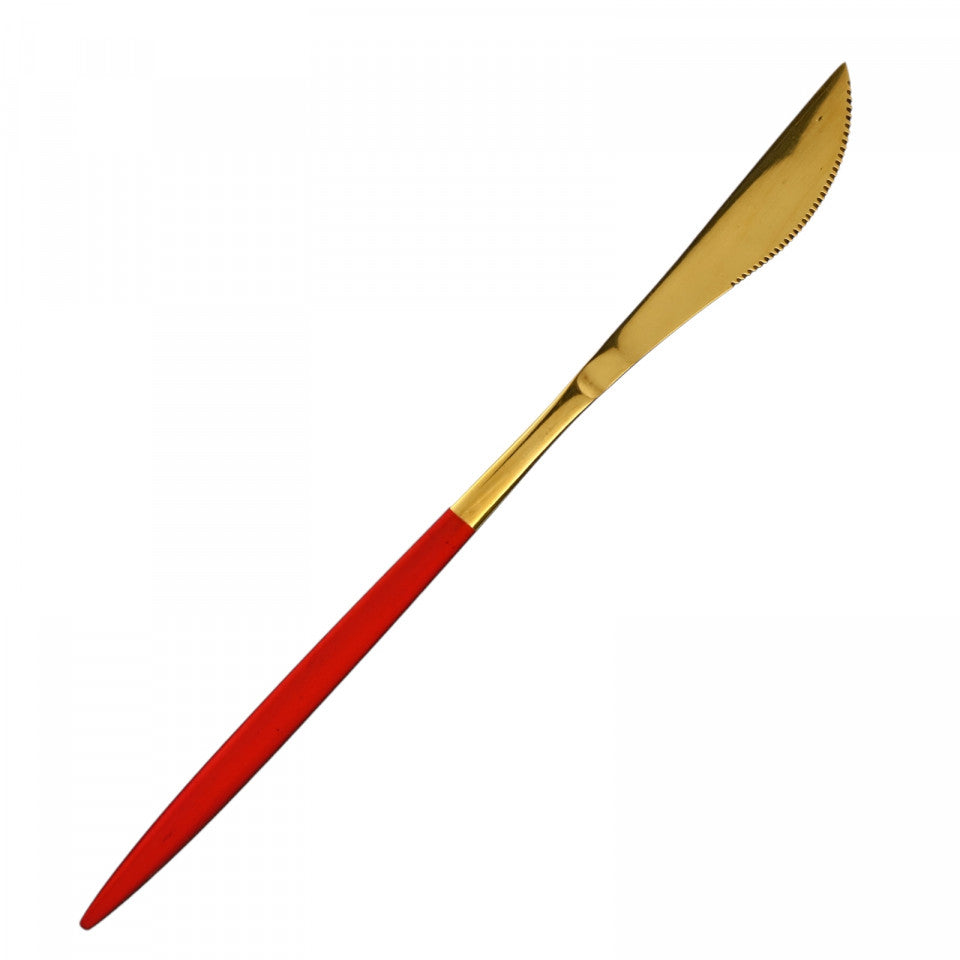 Set 6 bucati, Cutit din inox, in stil Portughez, Deluxe, 22 x 1.5 cm, Rosu/Auriu