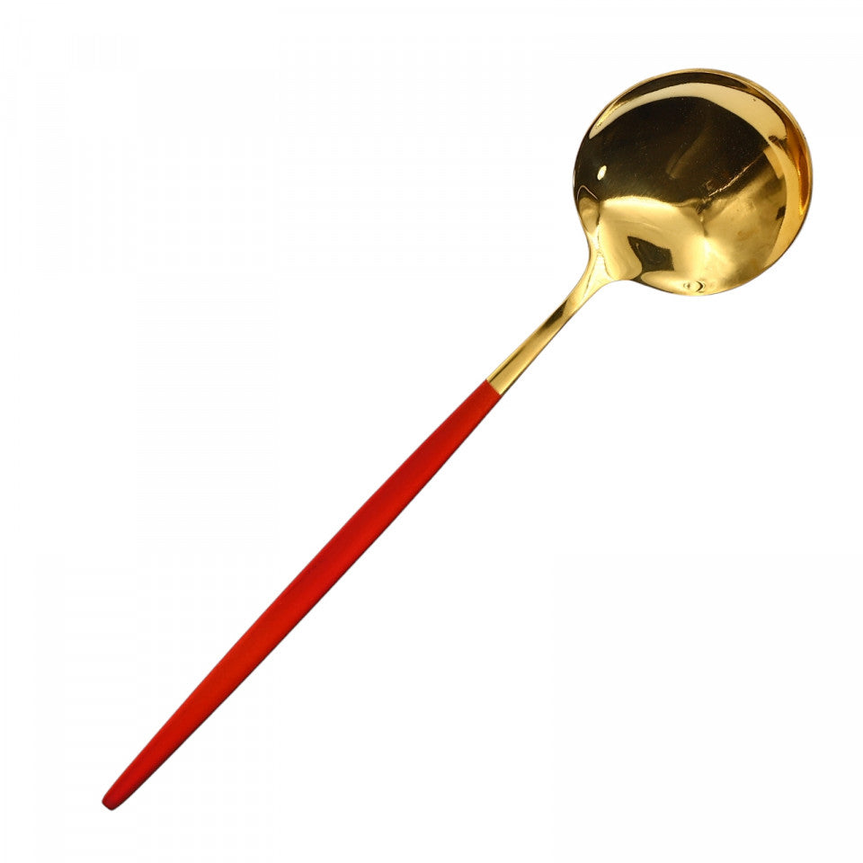 Set 6 bucati, Lingura din inox, in stil Portughez, Deluxe, 21 x 4.7 cm, Rosu/Auriu