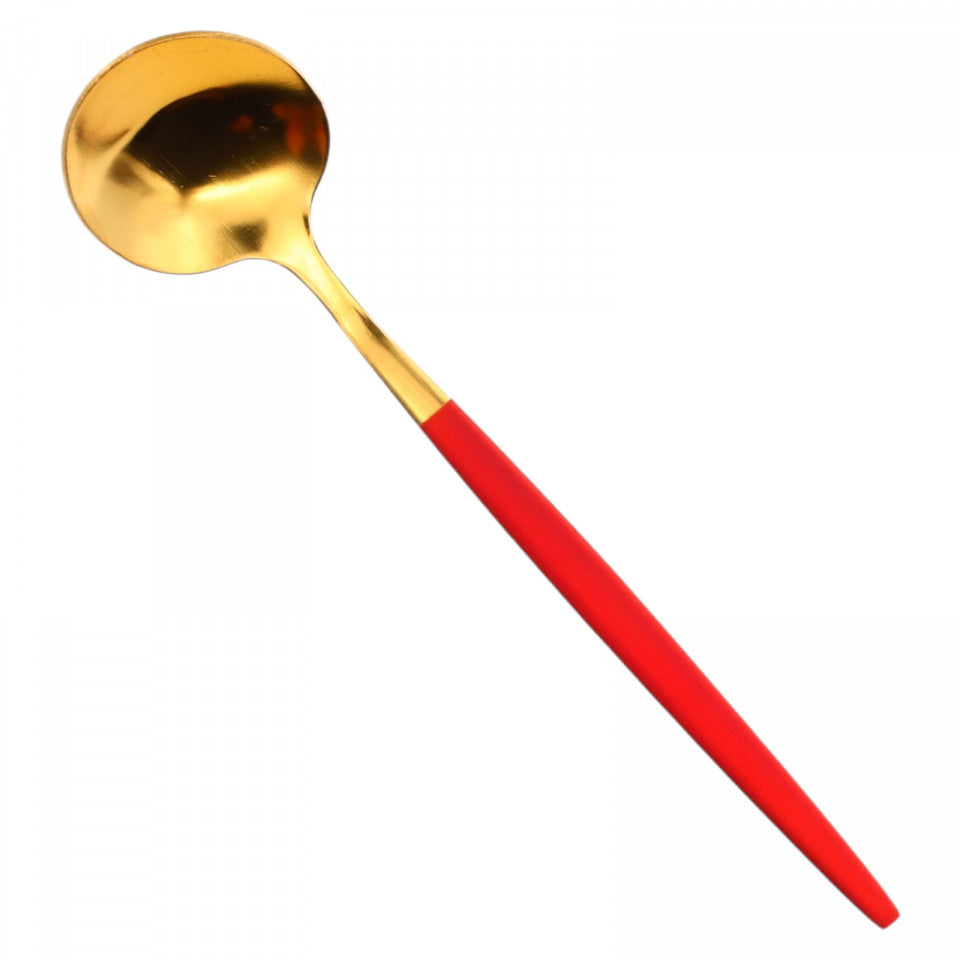 - Set 6 bucati, Lingurita din inox, in stil Portughez, Deluxe, 13 x 2.8 cm, Rosu / Auriu