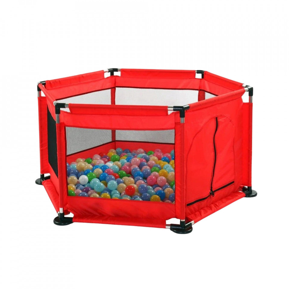 Tarc de joaca pentru copii, metalic, cu 50 bile multicolor, 128 x 113 x 65 cm, Rosu