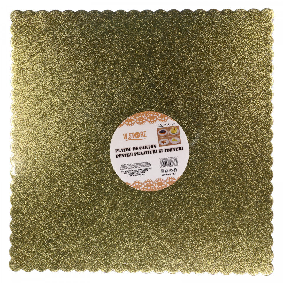 Set 5 bucati, Platou pentru tort sau prajituri, model patrat, din carton 3 mm x 30 cm, Auriu